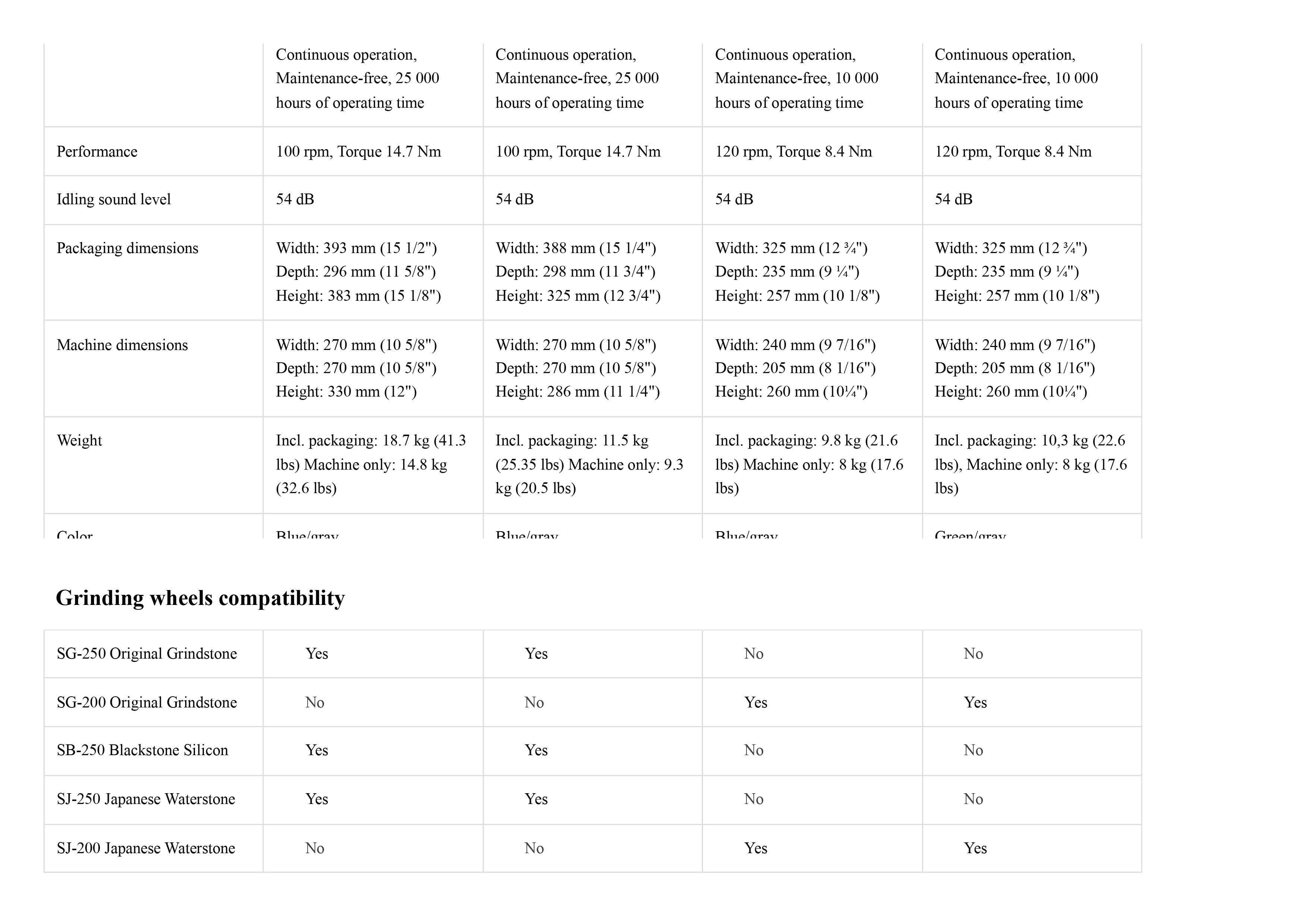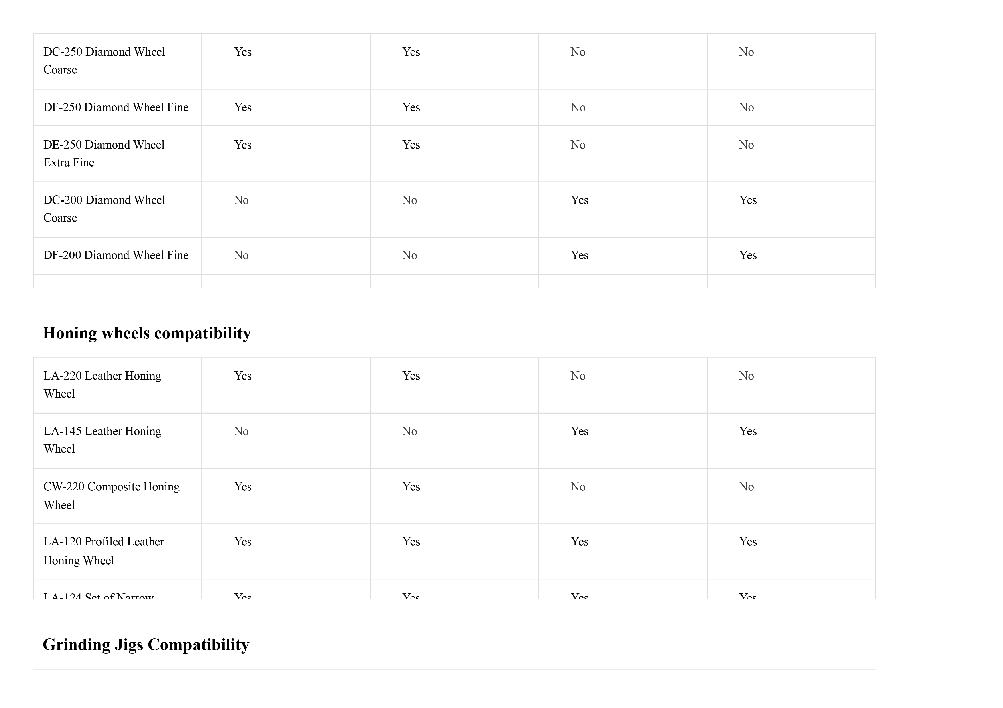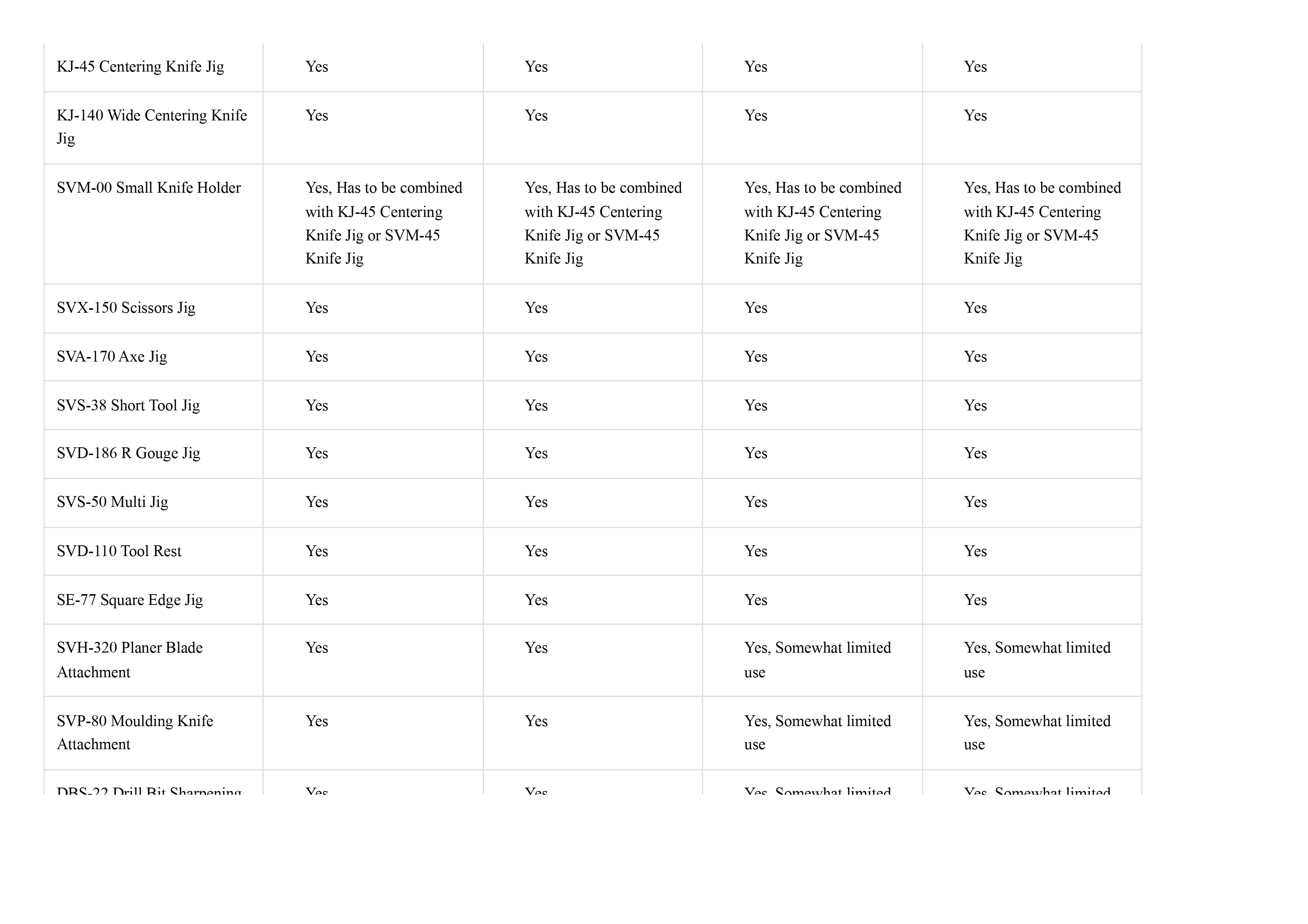 ตารางเปรียบเทียบเครื่องลับคมหล…