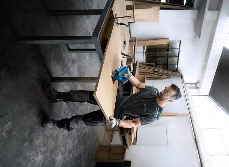 GST 183-LI Professional คือเลื่อยจิ๊กซอว์ไร้สายที่ช่างฝีมือทุกระดับเลือกใช้ ตั้งแต่ช่างติดตั้งตู้ไปจนถึงช่างในงานแสดงสินค้าและช่างปรับปรุงอาคาร และอื่นๆ อีกมากมาย ช่วยลดความเมื่อยล้าในการตัดตรงและตัดโค้งชิ้นงานไม้ พลาสติก และโลหะ